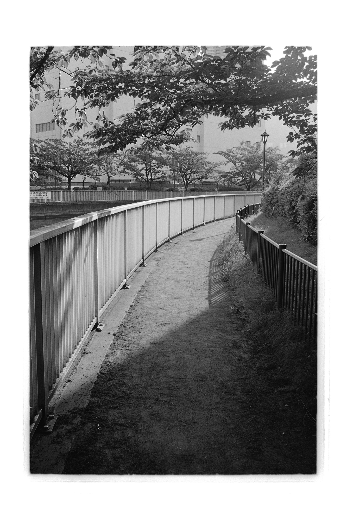 橋と平行に掛かるパイプを撮影。パイプを支える脚に付いたフジツボ?みたいなものが良く写ってます。シャドウディテールが素晴らしい現像液です。