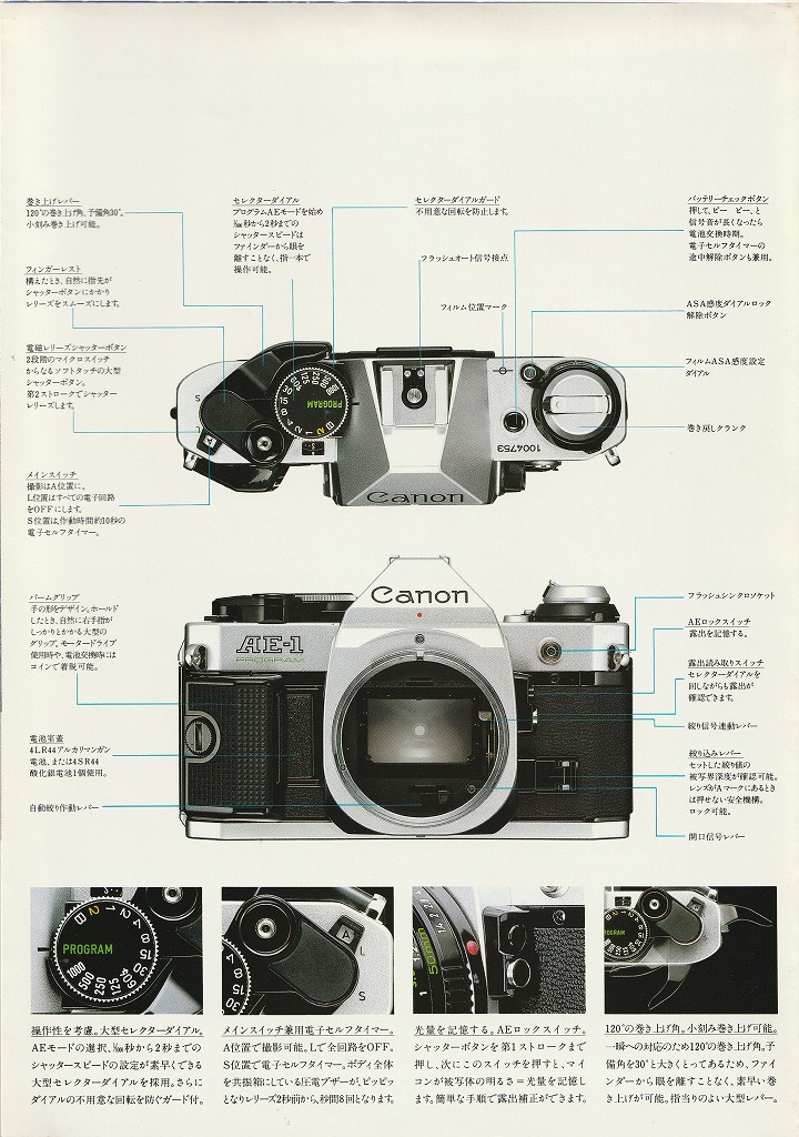 カメラカタログのカメラ名表記が、初期はキヤノンAE-1+P(プラス・プログラム)であったのに対し、キヤノンAE-1プログラムに変更されています。