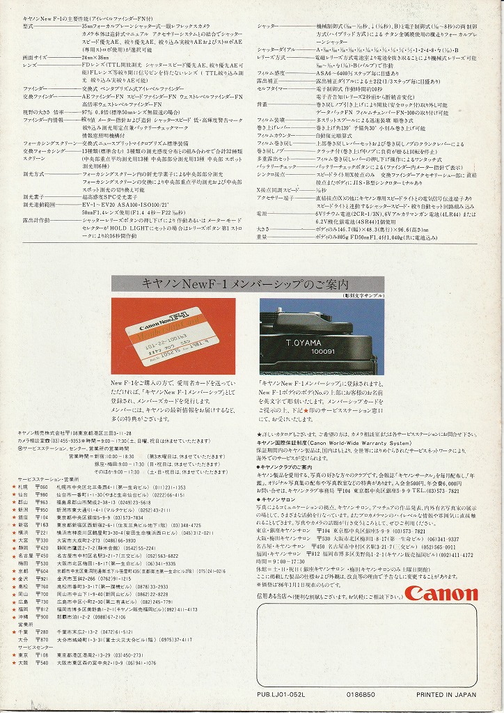 キヤノンnewF-1カメラカタログ(1986年1月1日配布物)