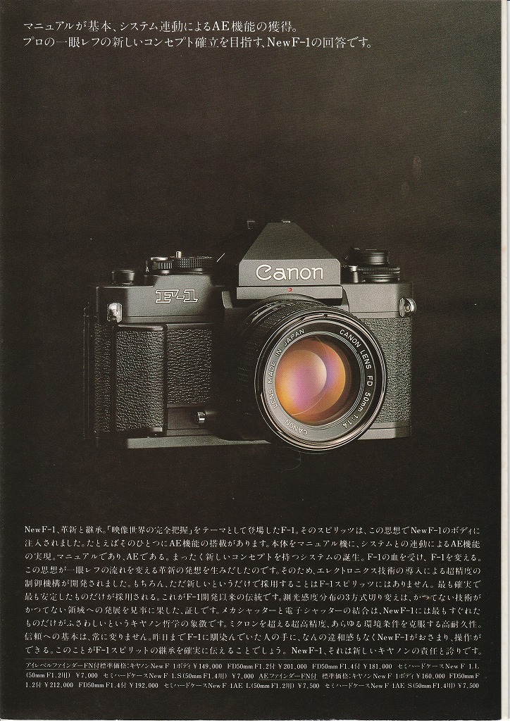canon new F-1・キヤノンカメラ・キヤノン一眼・canon一眼レフカメラのカタログ
