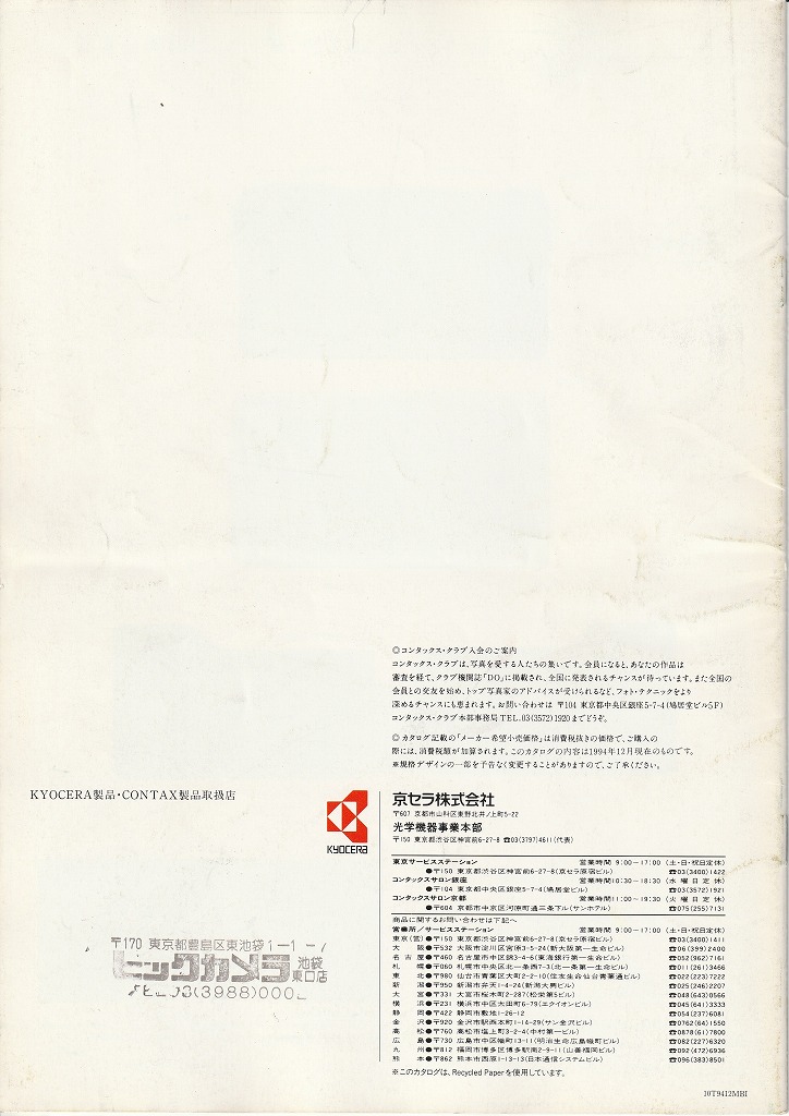 1990年に発売された、コンタックスTの後継機となる、35mmレンズシャッター式AFコンパクトフィルムカメラである、コンタックスTのカメラカタログです。