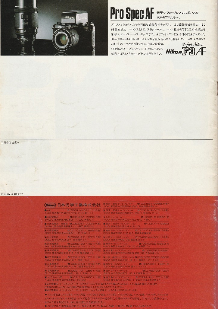 ニコンF3カメラカタログ(1984年12月1日配布物)
