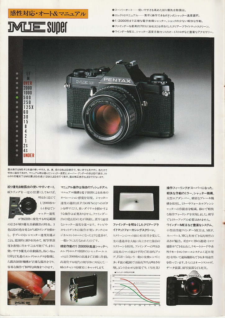 1982年のペンタックス一眼レフ総合カタログでは、「ペンタックスME F」と「ペンタックスMG」が加わり、「ペンタックスME」が消えました。